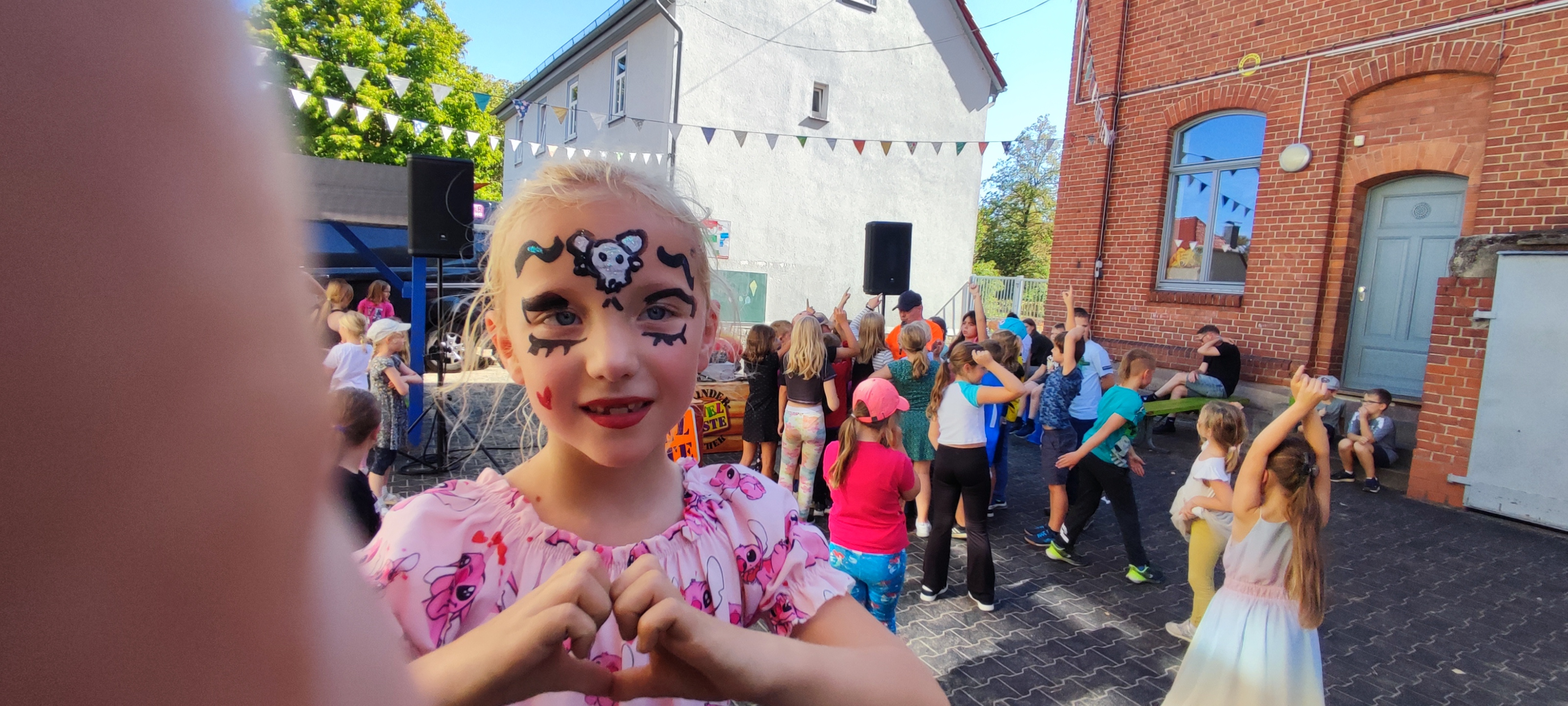 Während unseres Begrüßungsfestes betreuten Frau Heise und Frau Kämpfer unsere Schminkstation, an der sich die Kinder lustige Gesichter anmalen lassen konnten, eins schöner als das andere.