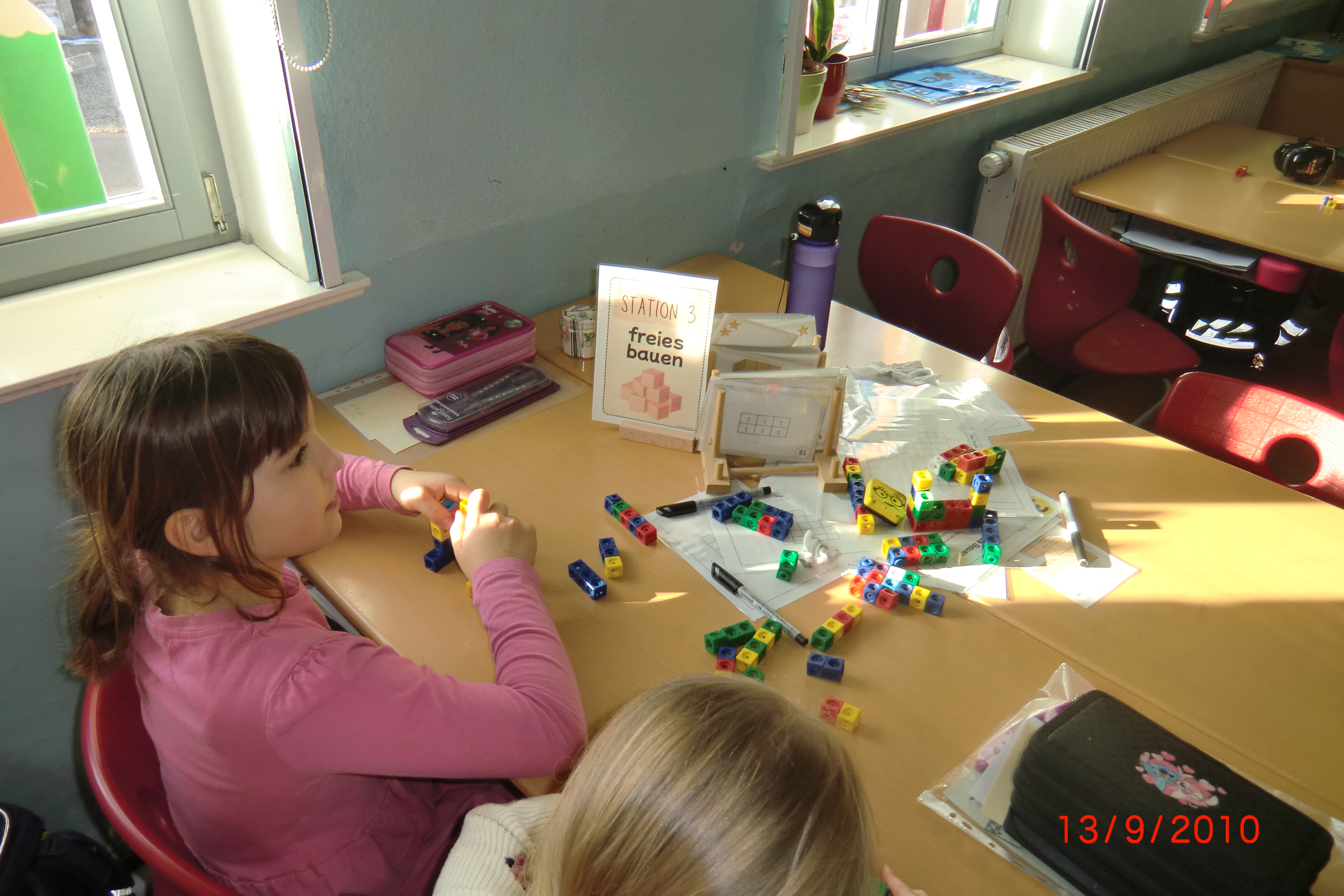 Mit einem Laufzettel ausgestattet konnten sich die Kinder frei im Schulhaus bewegen und selbst entscheiden, welche Stationen sie besuchen möchten. Das vielfältige Angebot bot für jeden etwas Passendes. In der Baumeister-Werkstatt wurde konstruiert und gebaut, während bei „Alles, was rund ist?“ Kreisformen im Mittelpunkt standen. An der Station „Möglich? Unmöglich? Sicher?“ wurde eifrig gerätselt und logisch argumentiert.