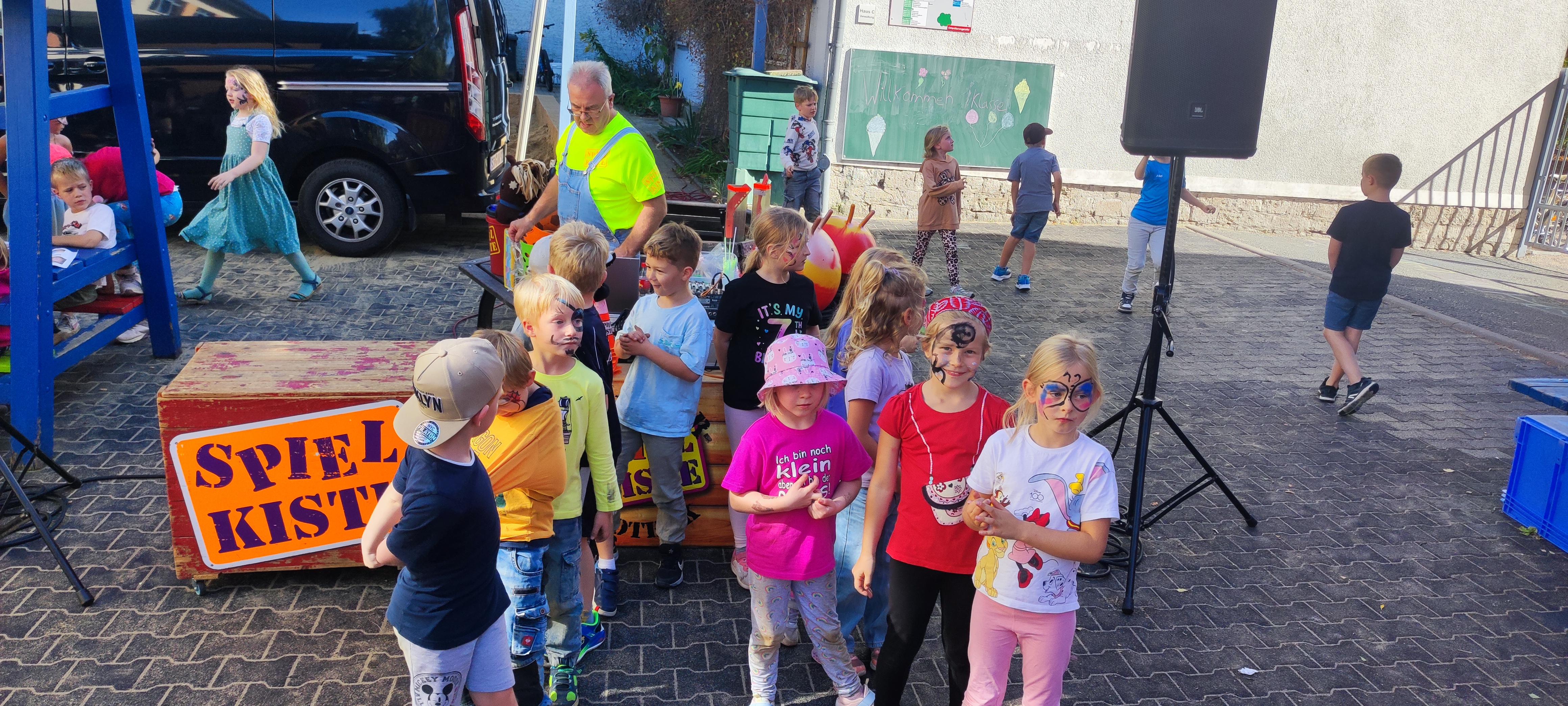 Den Höhepunkt des Nachmittags bildete das Animationsprogramm von Kai Wacker und DJ Joachim Götte, die ab 14:00 Uhr für grandiose Stimmung sorgten. Ganze 90 Minuten lang verwandelten sie den Schulhof in eine große Partyfläche. Mit mitreißender Musik, spannenden Spielen und viel Humor brachten sie die Kinder zum Tanzen und Lachen. Kleine Preise warteten auf die Siegerteams, doch auch die übrigen Kinder gingen nicht leer aus – so fühlte sich jedes Kind als Gewinner.