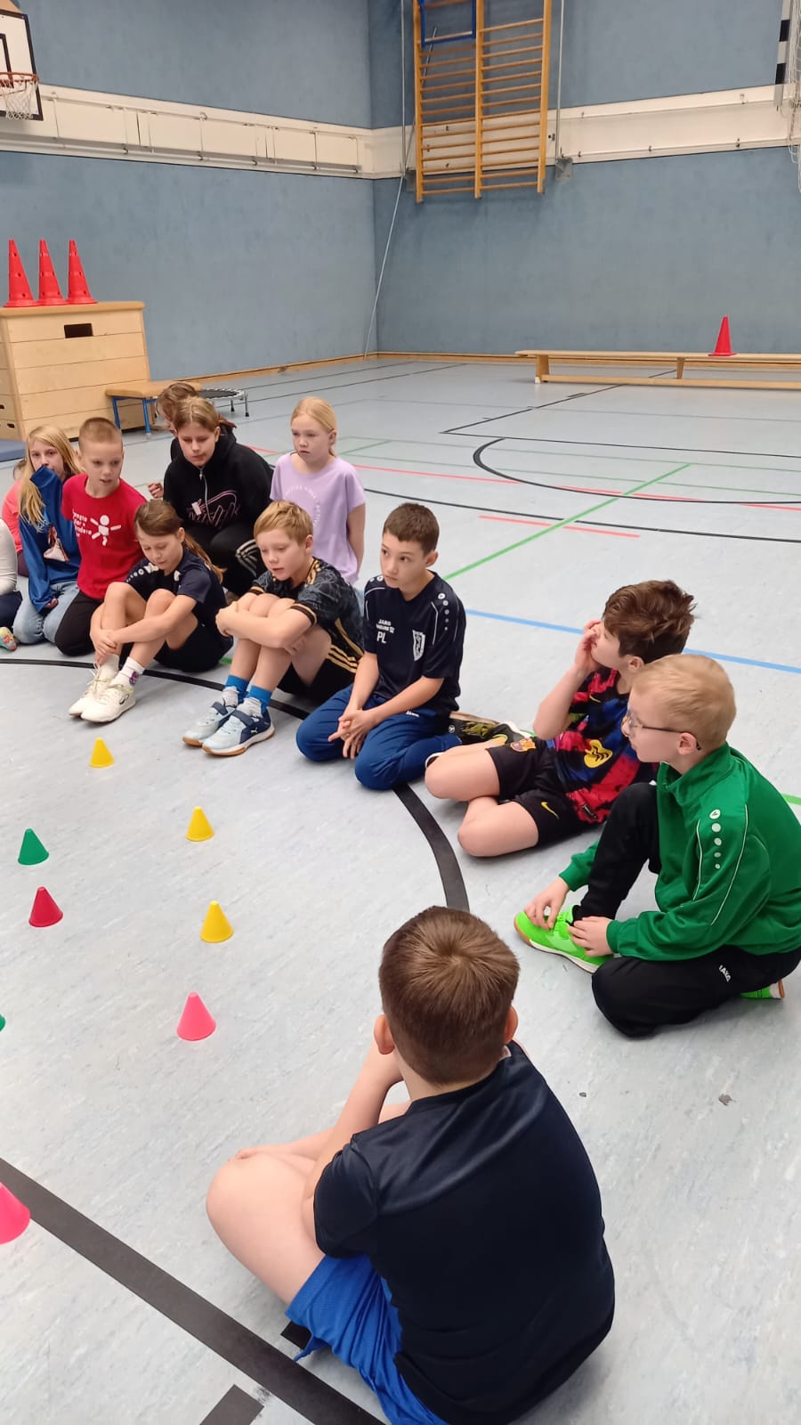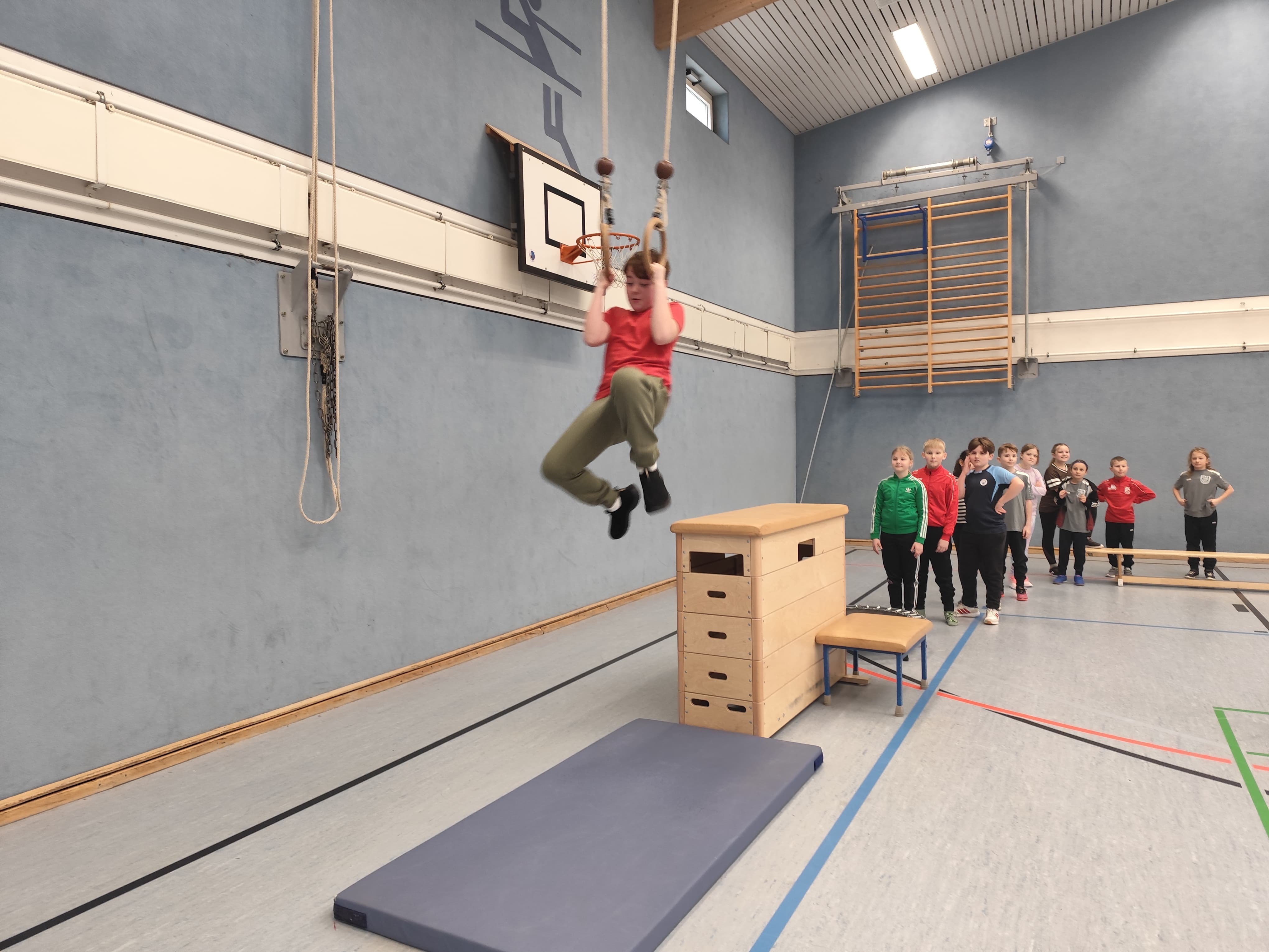 Auch der Sport kam nicht zu kurz. In der Turnhalle auf dem Schulgelände wartete ein abwechslungsreicher Parcours auf die Kinder. Unter der Anleitung des Sportlehrers Herr John konnten sie verschiedene Stationen ausprobieren und gemeinsam in Gruppen tolle Spiele erleben. Die sportlichen Aktivitäten sorgten für viel Freude, Motivation und Bewegung.